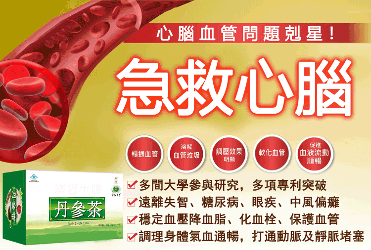 台湾醫學院研發的[丹參茶]得到了眾多國家的支持和引進,台灣、日本、馬來西亞的心腦血管患者使用之後,得到了很好的治療,紛紛分享了出了自己的康復歷程