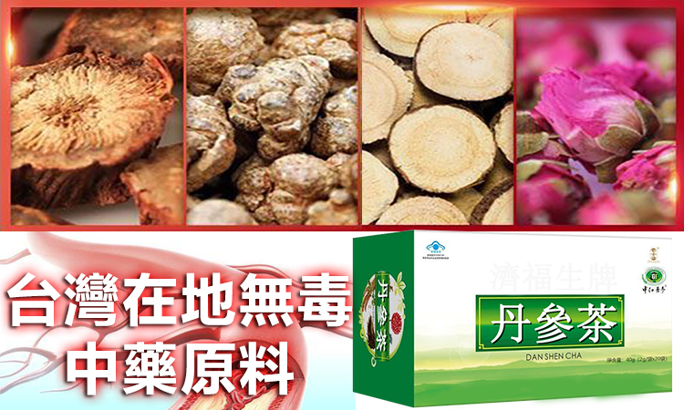 為更好的治療心腦血管病,台灣醫學依靠中藥原理搭配食方使能夠發揮更大藥效。為保證藥效成分與農民共同合作以丹參為主要添加了三七、甘草、玫瑰製成中藥茶[丹參茶]其中三七具有止血補血,抗血栓;甘草具有益氣復脈;玫瑰具有理氣,促進血液循環,和血散瘀的功效,此方又稱為【丹參保心茶】起主要原料皆來自台灣在地無毒中藥原料。