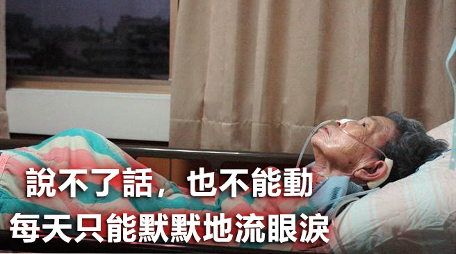 來自台北的陳阿嬤 今年65歲,2年前得的腦血栓,去年又突發腦出血,開始的時候老伴兒攙著還能勉強下地,後來嚴重了就徹底攤在床上動不了了。這兩年間吃溶栓藥、打溶栓針,跑遍各大醫院,花了不少的錢,可都沒有什麼效果,最後家人都放棄了治療。陳阿嬤在床上吃喝拉撒大半年,全靠老伴兒伺候著,這樣生不如死的日子讓她覺著活著太受罪了,說不了話,也不能動,每天只能默默地流眼淚。