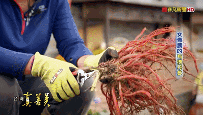 看著一株株甫挖出的新鮮丹參,葉片間盛開著朵朵紫色小花,丹紅色的根系相當完整,芷妘姐言道:「我們的丹參品質真的很好!」