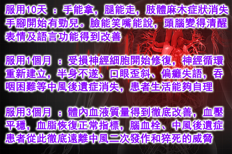 服用前:手腳發麻 行動困難 服用後:說話流利 步態穩健